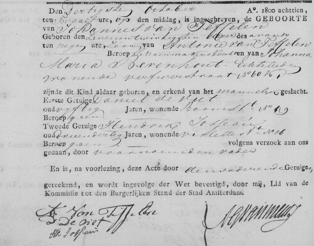 Johannes is geboren om 21.00 op 27 oktober 1818 in Amsterdam als zoon van schoenmakersknecht