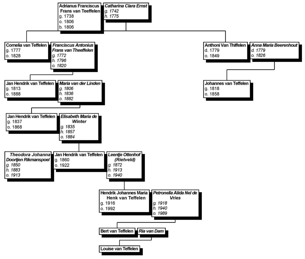 Johannes’ vader Anthoni is een broer van Cornelia van Teffelen die gehuwd was haar neef (1C) Frans